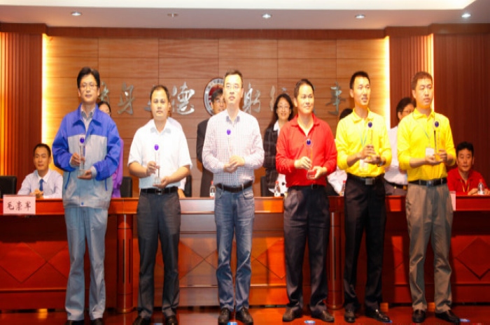 王堯飛(後排左二)、肖華煒(wěi)老師(後(hòu)排左一)分(fèn)別榮獲個人二、三等獎,並榮獲教師維修組團體(tǐ)三等獎