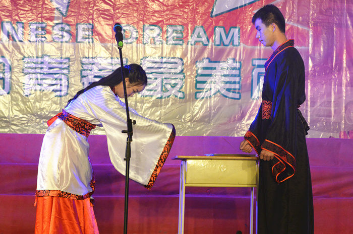開(kāi)幕式伊始。由學院黨委(wěi)副(fù)書記(jì)張健生致開幕詞,他首先代(dài)表學院領導(dǎo)對此(cǐ)次文化(huà)藝術節的召開表示熱烈的祝賀,並對(duì)在文化藝術節籌備期間付(fù)出(chū)辛勤勞動(dòng)的教師和(hé)同學們表示感謝。張副書記表(biǎo)示,青年者,國之魂。青年最富有夢想與朝(cháo)氣,是祖國(guó)的未來和民族的希(xī)望。國家主席習近平在五四青年節與(yǔ)各界優秀青年(nián)座談時指出,“現在(zài),青春是用來奮鬥的;將來,青春是用(yòng)來回憶的”;在北京主持召開全國文(wén)藝工作(zuò)座談會中強調,“文(wén)藝是時代前進的號角,最能代表一(yī)個時代的風貌,最能引領一(yī)個時代的風氣”。作為現代青年的各位同學,應該響應時代召喚,把青春夢想、人生追(zhuī)求自覺(jiào)融入實現國家夢、民族夢的偉大曆史進程中,堅定理想、學習知識、激發情感、錘煉品格、拚搏實幹,用青春同心共築中國夢。