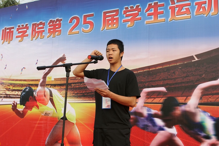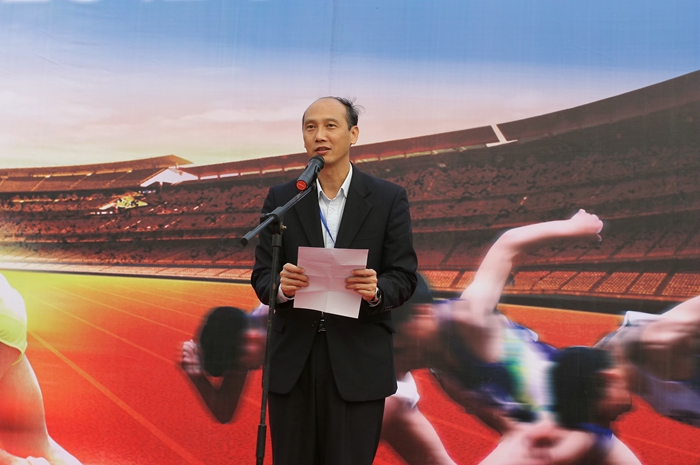 運動員入場完(wán)畢後,學院(yuàn)關菲明副院長發表了熱情洋溢的講話。他(tā)首先代表學院向精心籌(chóu)備本(běn)屆運動會的全體師生們表示衷心的(de)感謝,向全體全體運動員、裁判員致以親切的問候。他指出,校運會是對我校體育工作的一次大檢閱,更是對(duì)我院(yuàn)師生(shēng)精神麵貌和綜合素質的大檢閱。希望全體運(yùn)動員遵守比賽規程,服從大賽(sài)的安(ān)排,尊重裁判,尊重對手,在賽場(chǎng)上做到成績與風格(gé)同在(zài),友誼與歡(huān)樂並存,讓青春的活力迸發在賽場(chǎng)的每個角落,充分展示當代技師學院學生(shēng)蓬勃向上的時代風采和精(jīng)神風貌。