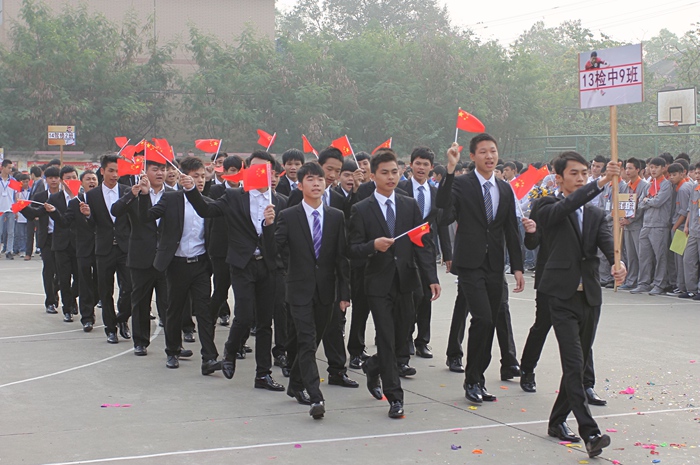 我院高峰校(xiào)區儀(yí)仗(zhàng)隊(duì)、彩(cǎi)旗隊、裁判員代表(biǎo)隊以(yǐ)及學生運動員方塊隊在激昂的運動員(yuán)進行曲中依次入場。各方塊隊精神抖擻、口號響亮,整齊劃一地走過主席台。