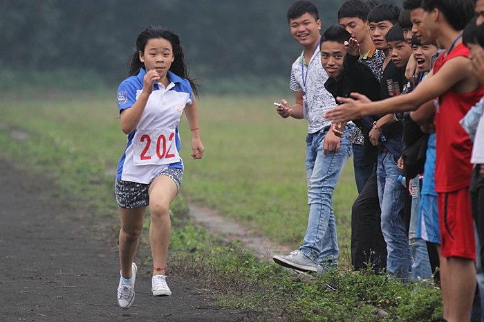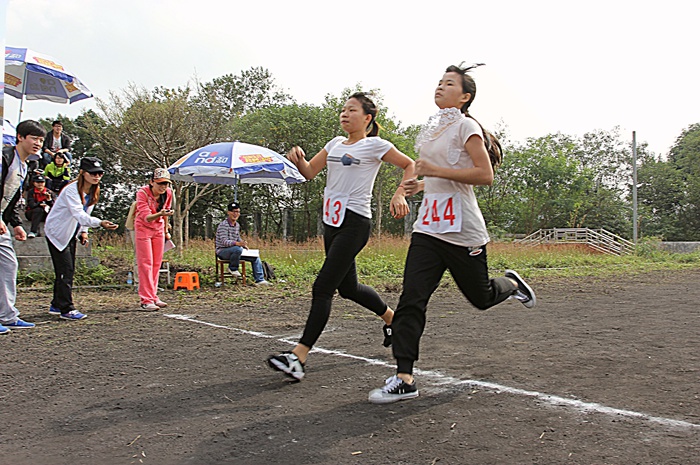 女子(zǐ)1500米比賽現場,14市場營銷班黃嘉豔同學衝刺瞬間