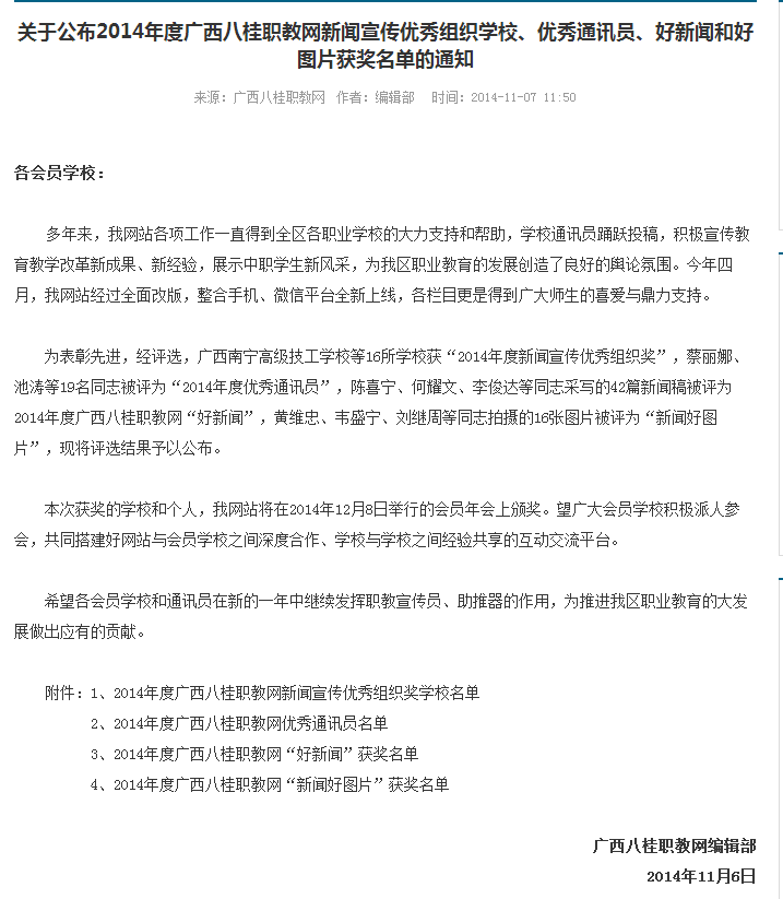 我院喜獲2014年度廣西八桂(guì)職教網新(xīn)聞宣傳工作多項榮譽