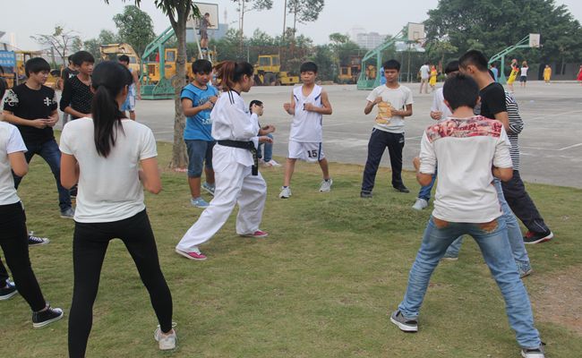 散打協會指(zhǐ)導老師(shī)給同學們講(jiǎng)動作要領