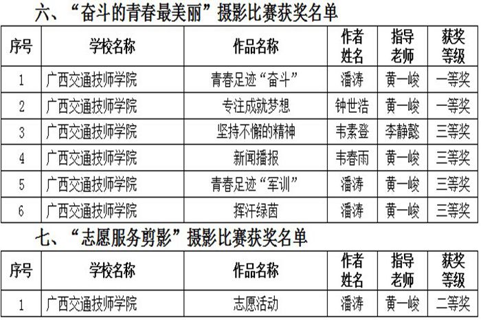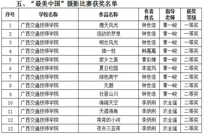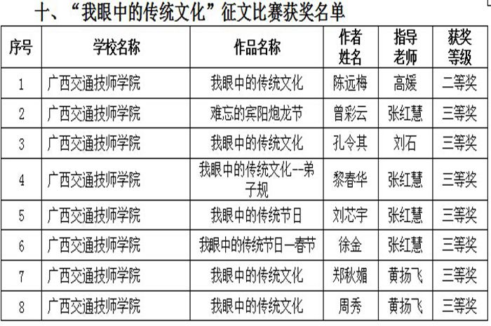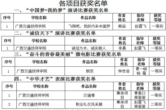 由自治區教育廳、自治區(qū)團委、自治區婦(fù)聯、自治區關工(gōng)委、中華職業教育社(shè)廣西分社主辦,廣西中等職業教育教學改革指導中心、廣西機電工程學校(xiào)、廣西八桂(guì)職教(jiāo)網承辦的第十一屆全區中等職業學校(xiào)“文明風(fēng)采”競賽活(huó)動已圓滿結束,我院(yuàn)師生在此次活動中成績斐然。