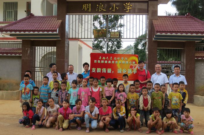 那坡縣委常委、副縣長覃(tán)彤,教育局長隆海英、明浪村(cūn)書記韋紅亮等熱情接見了支教一行,他們對城鄉兩校攜手、支援貧困山區教育表示熱烈歡迎並寄予厚望。