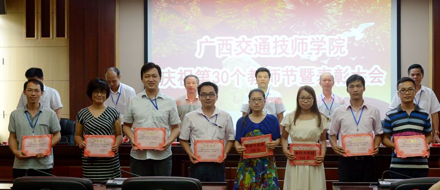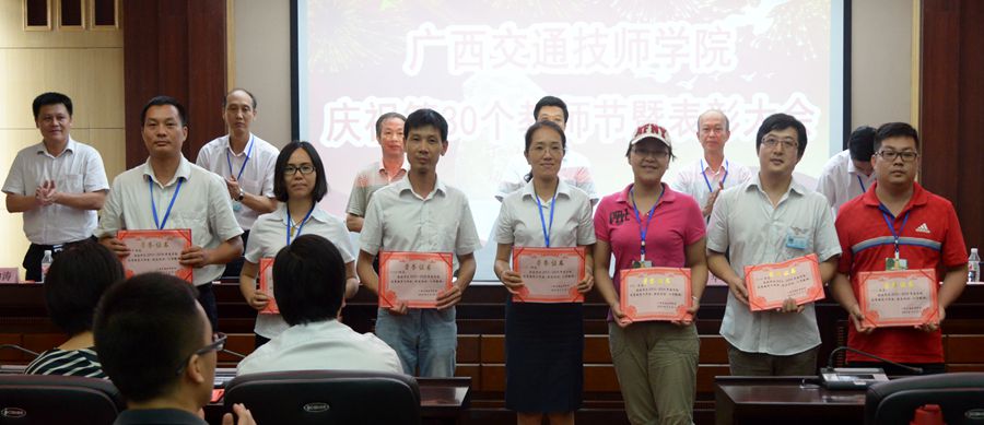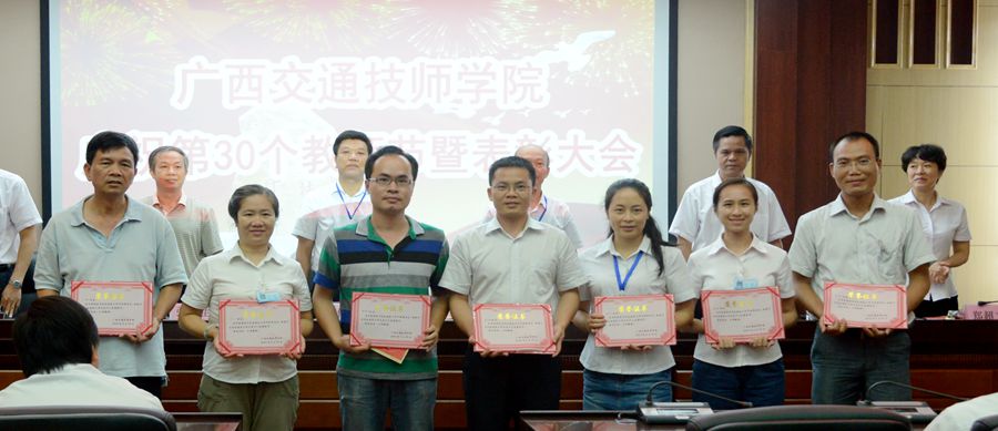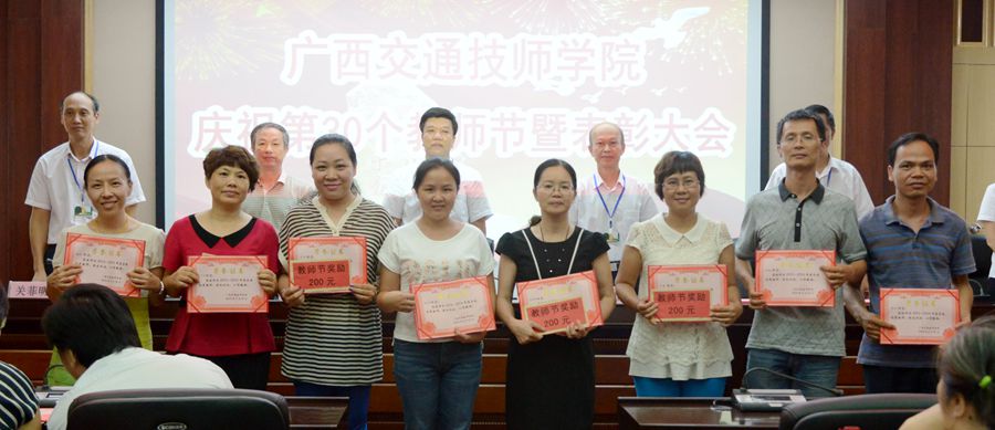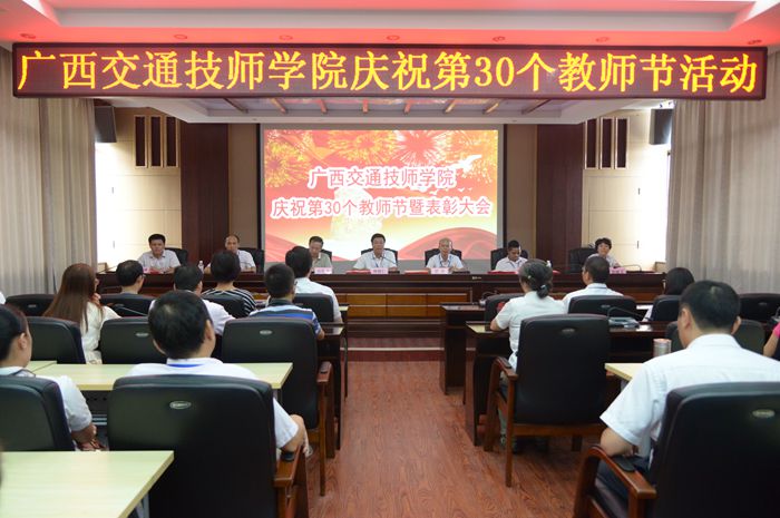 鍾修仁院長(zhǎng)在大會上(shàng)致辭,他代表全院向辛勤耕(gēng)耘在教育崗位上的全(quán)體教師致以節日(rì)的祝賀(hè)和崇高的敬意。鍾院長在講(jiǎng)話(huà)中指出,今年以來,在全(quán)院教職員工的共同努(nǔ)力下,學院各項工作繼續保(bǎo)持良好的發(fā)展勢頭。一是(shì)學院辦學規模進一步擴(kuò)大。今年暑假,廣西公路技工學校劃歸我院管理後,學院(yuàn)占地麵積進一(yī)步擴大,現(xiàn)有在校生達到(dào)8200多人,教職員工達到400多人,開設專業(yè)增加到36多個,擁有實訓設備6332台套、工位數7372個(gè)。二是我院2014年招(zhāo)生工作取得可喜成績。目前,本(běn)部招生注冊學生人數達到2520多人,長堽校區(即公路技工學校)報名注冊人數達到720人(rén),兩校共(gòng)錄取學生3200多人。今年畢業生推薦率超過200%,就業率近99%,頂崗(gǎng)實習生全部安排落實到位。三是學院基礎設施建設加快推進。順利通過廣西示範特色校項目驗收的汽車4S實景教學基地正式投入使用;繼續(xù)推進交通工程實訓中(zhōng)心、伊嶺校區(qū)綜合實訓大樓等(děng)項目建設,計劃在邕武校區建設的包括學(xué)生食堂、學生文體中心、圖書館、信息與商務類專業理論(lùn)實訓教室等功能在內的綜合大樓,各項報建手續工作也在抓緊開展。四是紮實推進國家示範學(xué)校、國家級高技能人才培訓基地等各項目建設。按照示範校建設方案和任務(wù)書(shū)的要求,以全國、廣西教(jiāo)育大(dà)會的召開為契機,加大(dà)實訓設備(bèi)投入(rù),改善教(jiāo)學設施條件,創新人才培養模式,深化課(kè)程(chéng)體係改革,加強師資隊伍建設,不斷提高辦學綜合實力和吸引力,順利通過了(le)國家示(shì)範校(xiào)建設中期檢查。五(wǔ)是學生管理教育工作安全有(yǒu)序。學生綜合素質得到進一步提(tí)升,學生管理教育工作得到全院教職員工的認同和支持,全員管理和封閉式管(guǎn)理得到進一步的深化和提升,國學教育(yù)長抓不懈,成效顯著。六(liù)是學院行政(zhèng)後勤保障有力,基礎設施進一步(bù)完善。五是學院短期培訓業務保持快速增長勢(shì)頭。截至8月底,我院對外培訓總量突破1.7萬人。