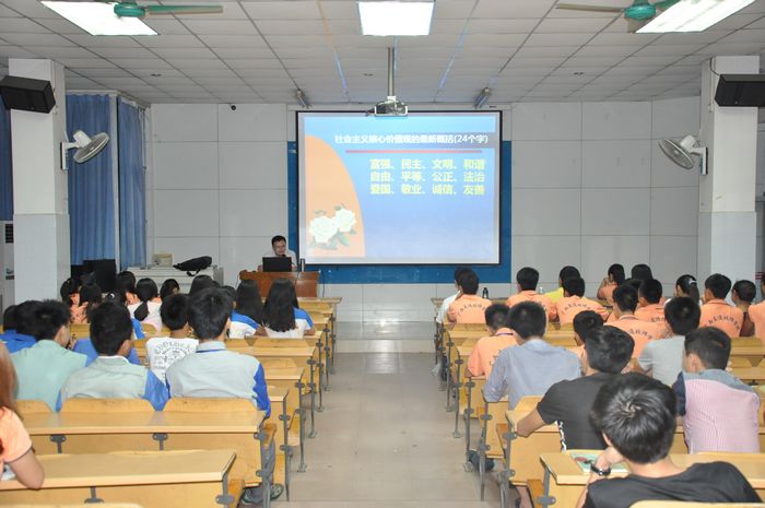 李毅(yì)老師圍繞社會主義核心(xīn)價值(zhí)觀深刻闡述了五方麵(miàn)內容,即社會主義核心價值觀的理論發展(zhǎn)、基本含義、理(lǐ)論內容、內涵特點、重要意義,通過引經據(jù)典、圖(tú)文並茂、深入淺出對社會主義核心價值觀(guān)進行了解析,並(bìng)從倡導(dǎo)廣大(dà)青年要憑著自己的高貴品質,努(nǔ)力實現人生價值服務社(shè)會、報效祖國。