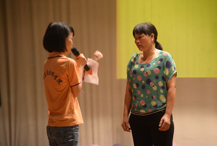 當2012級汽車營(yíng)銷一班的三位學生的家長應邀出現在舞台上的(de)時候,三位學(xué)生(shēng)有些驚訝(yà),在大家的鼓勵下沒有了羞(xiū)澀,大膽地說出了他(tā)們深藏在內心裏的感激之情。
