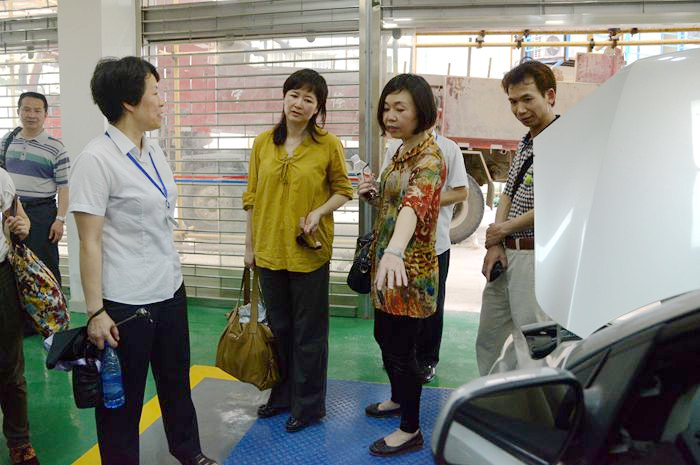 廣西商業高級技工學校一行人先後參觀了我院聲樂實訓室、信息(xī)與監控中心以及多功能演播廳(tīng)、形體訓練室(shì)、大師工作室、實訓大樓以及即將竣工的汽車4S實景教學基地等。袁(yuán)婭副書記一(yī)行對我院先進的(de)教育和辦學理念、不斷擴大的實訓規模、以及嚴格而有特色的校園管(guǎn)理措施等給予了高度稱讚。