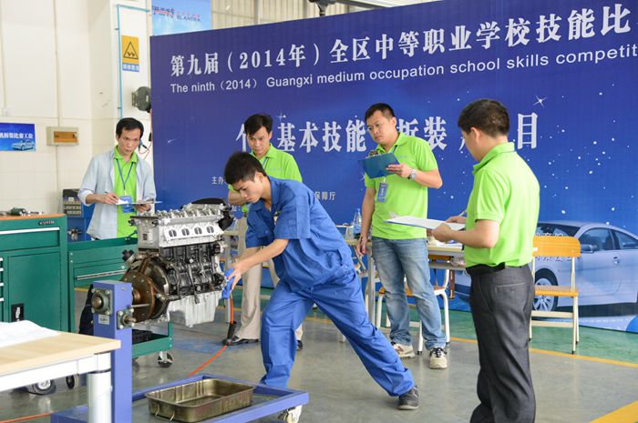由羅(luó)宗港、潘利(lì)丹、趙文、劉小強等多位教師組成的訓練團隊積極備戰,經過層層選拔(bá)之後選定4位選手進行了嚴格的集中訓練。經過兩天激烈的角逐,我院(yuàn)2012級(jí)塗裝班林劍波(bō)、2011級電高3班陳暉邦(bāng)和(hé)2012級電高2班蒙堅傑分獲汽車塗裝技(jì)能競賽、汽車維修基本技(jì)能個(gè)人賽項目和(hé)汽車空調技能競賽第一名,2012級鈑中1班覃世軍(jun1)獲得汽車鈑金技能競賽(sài)第三名。此次全區(qū)中職技能大賽“汽車運用與維修”類競賽還(hái)作(zuò)為(wéi)全國職業院校技能大賽選拔賽賽(sài)項,我院3位獲得第一名的學生已獲得參加2014年全國大賽的資(zī)格,將在今年6月與全國其他(tā)省份的優秀選手同台競技(jì)。