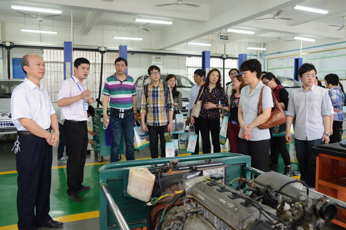 一行人參(cān)觀我院汽車實(shí)訓設(shè)備