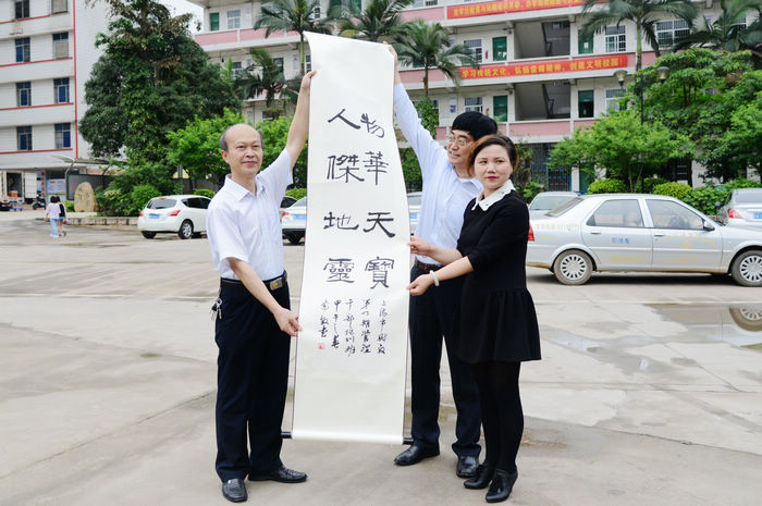 上海市西南工程學校黨總支書記、副校長喬敏向我院贈送書法紀念品