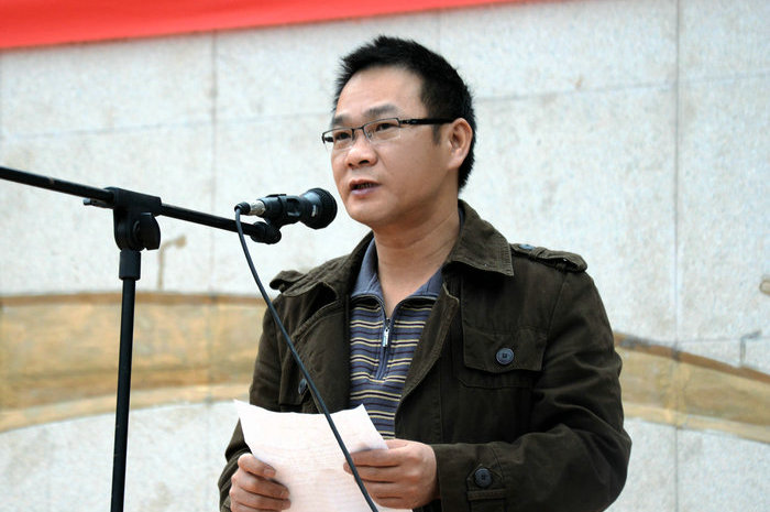 學(xué)院信息與(yǔ)商務(wù)係主任封桂炎在儀式上講話