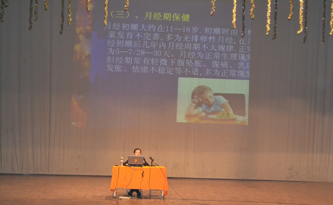 11月20日晚,我院邀請了中(zhōng)國優生科學協會常務理事,廣西優生科學協會副會長甘柏柳教(jiāo)授為我院女生開展了一堂生理衛生講座(zuò)。講座設在學院禮堂,由學(xué)院團委組織。講座(zuò)圍繞(rào)女性青春期生殖健(jiàn)康保健等主題展開,設計了知(zhī)識傳授和互動問答等環節。甘教授為女生們介紹(shào)了青春期生殖健康保健方麵的知識,從生殖器(qì)官解剖功能和發育、青春期生理衛生(shēng)與保健(jiàn)、青春期性(xìng)知識和性心理、青少年過早性行為的危害等幾個方麵給(gěi)講解。在互動(dòng)問答等互動環節,女生們踴躍提出疑問,就自身的身體情況向甘教授(shòu)請教。甘教授對學(xué)生的問題都一一地進行了解答,她幽默的語言引來同學們陣陣笑聲。