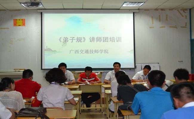 以學習和實踐《弟子規(guī)》為依托,以(yǐ)建設(shè)文(wén)明禮儀培訓基地為抓手,充分發揮文明禮儀的示範和輻射作用,讓全體(tǐ)在校學生形成禮儀規(guī)範,由鍾修仁(rén)副院(yuàn)長為組長的《弟子規》講師團,經過課題成員一個多月的研習、自學、培訓、製作課(kè)件、設計教案(àn)和教學活動,於2013年10月14日(rì)組織講師團(tuán)成員進行了研習和培訓,培訓結束後,鍾副院長為所有老師頒發“思想道德(dé)教育課程《弟子規》講師團”講師聘(pìn)書,新一期的《弟子規》講師(shī)團正(zhèng)式成立。