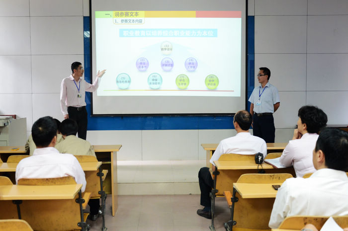 汽車工程係教師(shī)高德寶、何弘亮進行說課演示