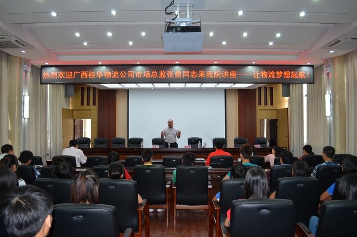9月25日下(xià)午,我院邀(yāo)請了廣西宅配通配送有限公司市(shì)場部推廣總監張勇為學院物流管理(lǐ)專業(yè)學生進行《讓(ràng)物流夢想(xiǎng)起航》專題講座。關菲明副院長、基礎學科部副主任(rèn)謝毅鬆及相關專業教師參(cān)加了講座(zuò)。