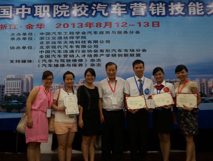 2013年8月,2013運華全國(guó)中職院校汽車營銷技能大賽在浙江省金華市舉行(háng)。我院選派(pài)的學生黃朗文、李晨參加了此次大賽,獲得(dé)第六名(míng)(二等獎的第一名)。