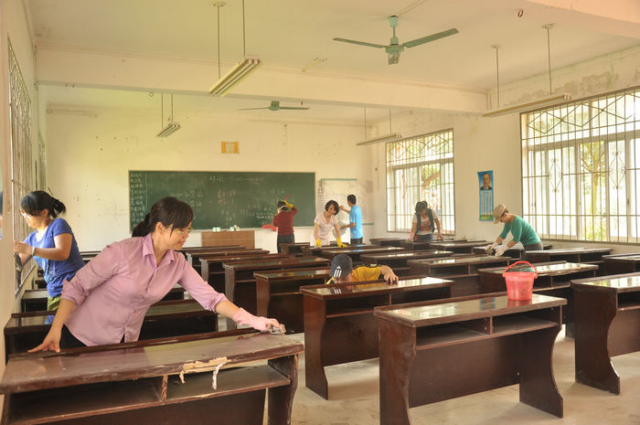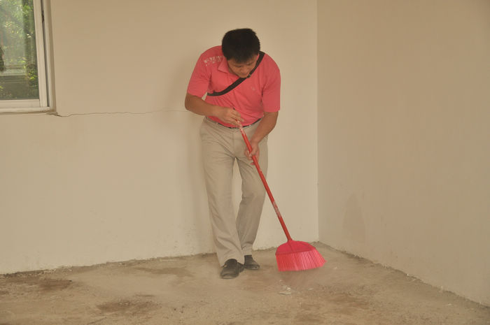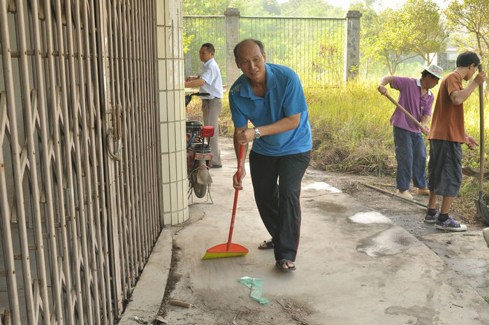 譚勁濤院長助理在清(qīng)掃高峰校區辦公區域