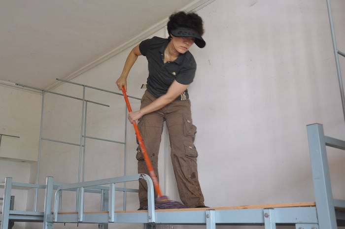 鄭超(chāo)文院長助理在打掃學生宿舍