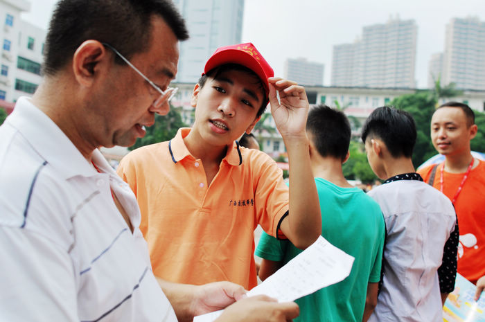 圖一:學(xué)生誌願者在為新生家(jiā)長解答疑問