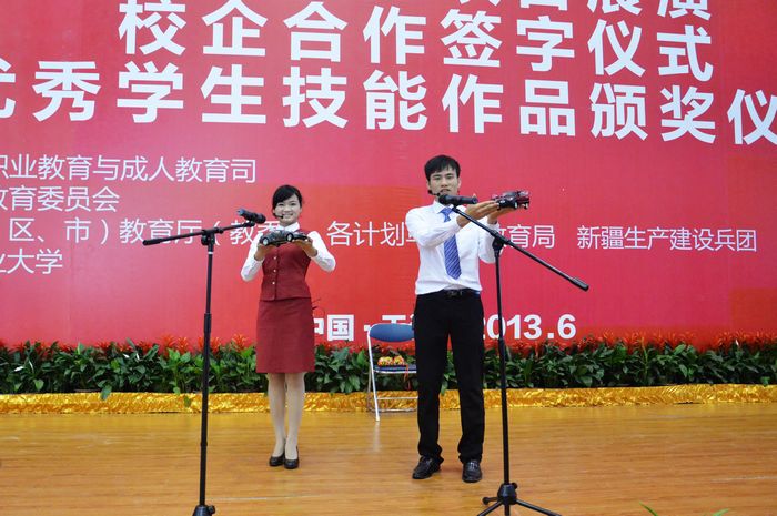 6月26日至28日,2013年全國職業院校(xiào)學生(shēng)技能作品展洽會(簡稱“展洽會”)在天津國際經濟(jì)貿易展(zhǎn)覽中心舉行,中共中央政(zhèng)治局委員、國務院副總理(lǐ)劉延東出席此次展洽會,並現場(chǎng)觀看了全國各職業院校學生參賽作品和技能展示。