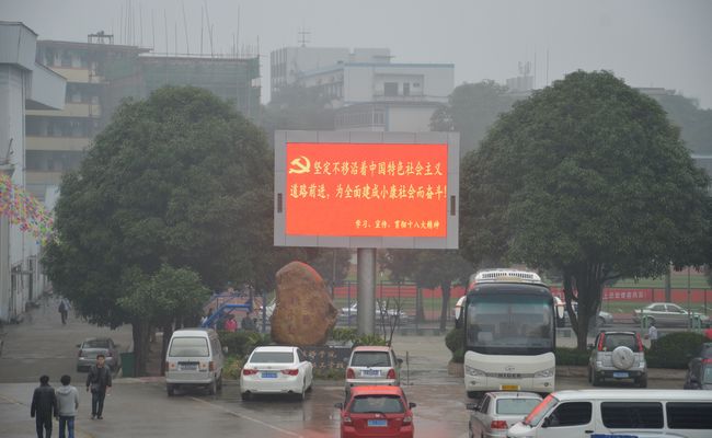 圖1:校園全(quán)彩顯示頻上全天滾動(dòng)播放“十八大精神”摘要——堅定不移沿著中(zhōng)國(guó)特色社會主義道路前進,為全(quán)麵建成小康社會而奮鬥(dòu)!