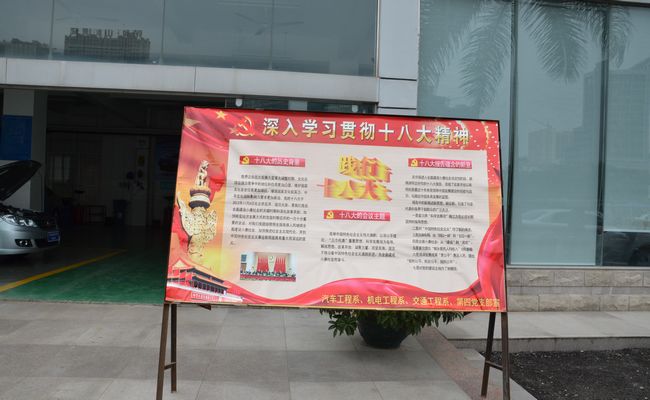 圖10:汽車工程係、機(jī)電工程係、交通工程係展板——深入學習貫徹(chè)十八(bā)大精神