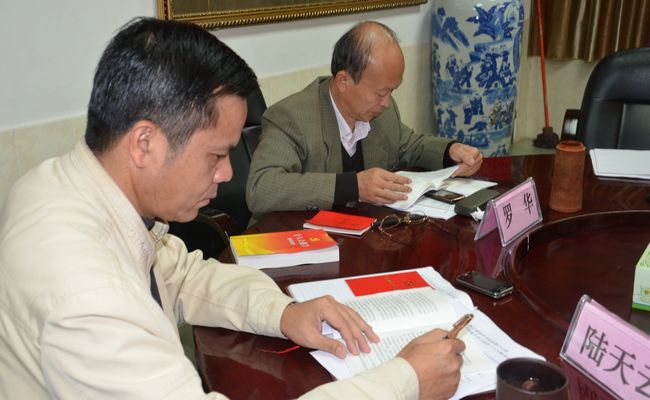 圖3:羅(luó)書記和陸副院長認真學習“報告”和黨章