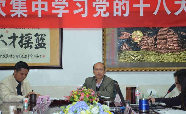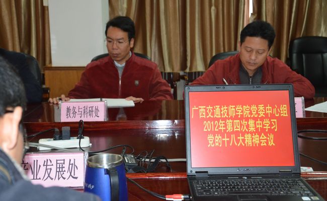 11月30日下午(wǔ),我院黨委中心組2012年第四次集中學習黨的十八大精神(shén)會議在辦公樓二樓會議室召開。會議深入學習了胡錦濤同誌在十八大會議上所(suǒ)作的報告,並提出學習貫徹意見。全體中層以上領導幹部,以及各黨支部書記(jì)、團委書記均按時參加了(le)會議。會議由學院黨委(wěi)委員、副院長陸天(tiān)雲同誌主(zhǔ)持。黨(dǎng)委書記羅華同誌在會(huì)議(yì)上做了重要學習(xí)講話。