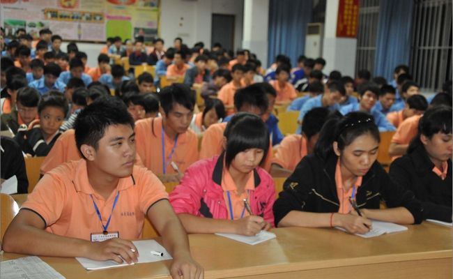 這些身穿(chuān)工作服、平日裏總在車間裏緊張操作的技校(xiào)生們,此時竟如此嚴肅(sù)而沉靜;他們個個全神貫注、認真(zhēn)聽(tīng)講,仔細地聽老師講新課(kè)、說新知,微笑著回答老師的提問,隨著(zhe)羅書記的講授時而凝(níng)思,時而神采飛揚。