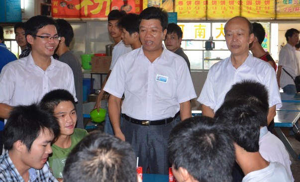 6月18日,學(xué)校撥出專款在校學生食堂為即將離校頂崗實習的1439名2013屆畢業學生加菜(cài)餞行,羅華(huá)書記、鍾修仁副(fù)校長等校領導到(dào)場慰問,學生工作處、後勤服(fú)務(wù)處領導以及各班主任參加(jiā)餞行活動。