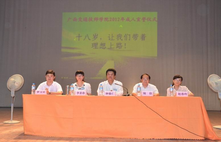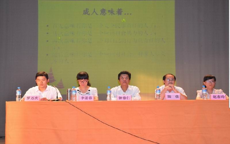 6月7日(rì)下午,我校在校禮堂隆重舉行“紀念建團90周年,弘揚五四精神” 學生(shēng)成人宣誓儀式,千餘名1994年出生的同學右手(shǒu)握拳進行莊嚴宣誓,向社會、向父(fù)母、向(xiàng)老師宣(xuān)告他們已經長大成人。鍾修仁副校長、學工處陸佳副主任、團委的各位老師和各班(bān)級的團(tuán)支書來參加見證儀式,並為同學們送去成人祝(zhù)福。