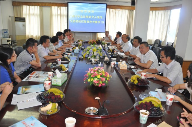 5月29日,廣州市職業技能研究會德育工作委員會考察組一行13人到(dào)我校參觀考察,在二樓會議室與學校(xiào)領導和相關部門負責人座談交流德育工作和校園文化建設(shè)情況,並參觀了學校校園和實訓大樓。