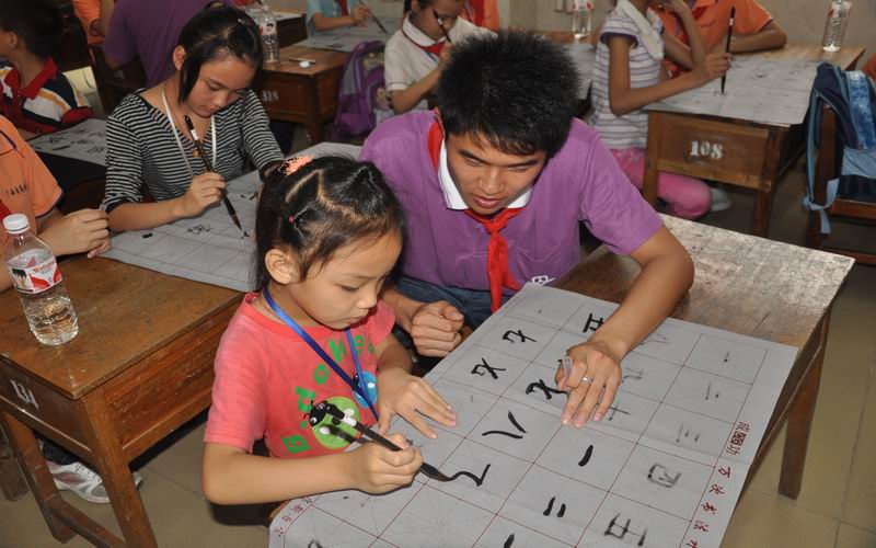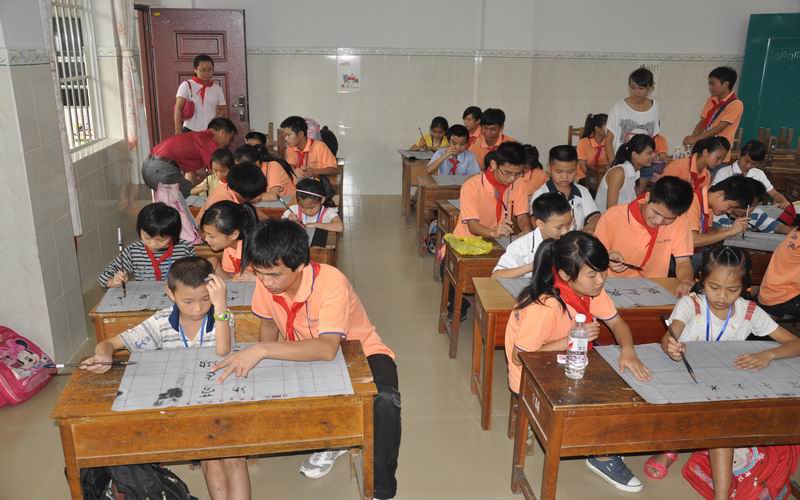 為了弘揚我(wǒ)國博大精深的書法藝術(shù),提高我校學生的書法素養(yǎng),豐富課餘生活,展現個性特長,促進(jìn)身心健康,同時(shí)結合我校開(kāi)展的“青春助力,放(fàng)飛(fēi)夢想”關愛農(nóng)民工子(zǐ)女素質(zhì)教育誌願服務行動,我校書法協會於2012年5月25日下午走出校門,到南(nán)寧市星星小學為那裏的22個孩子們(men)上了一節書法課。