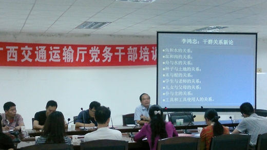 廳機關黨委專職副書記羅華芝,科教處張迎(yíng)春在12日上午的開班典禮上分別就開辦本次培訓班的主要(yào)意義和學習要求作重要講話。在為期3天的培訓中,來自全(quán)區各地交通運輸係統的學員們分為黨務和團務兩個小組分別對“中(zhōng)共黨史”“黨建信息(xī)化、科學化”和“創(chuàng)先爭優”以及“青年(nián)文明號創建實務”“青年幹部心理調適”和“共青團實務”等內容展開(kāi)了學習與交流。來自區黨校的盧尚純等專家教授和自治區公(gōng)路管理局黨委副書記覃昊針對各基層黨、團委、總支、支部的工作實際,以及因(yīn)黨、團務知識欠缺所形成的工作(zuò)難題,圍繞學員們在現場提出的問題一一進(jìn)行了細致認真的引導與解答。