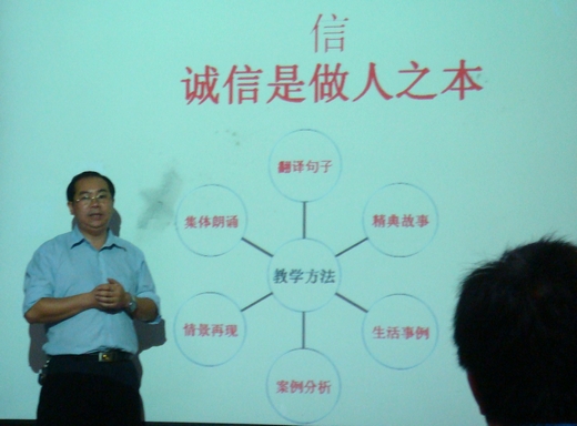 圖一 鍾(zhōng)修仁副校長(zhǎng)在(zài)《弟(dì)子規》“講師團”培訓中的講課
