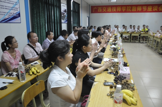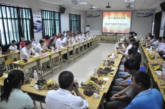 2011年9月9日下午(wǔ),為(wéi)慶祝第27個教師節,我校組織召(zhào)開教職工代表座談會。自治區道路運輸管理(lǐ)局黨委書(shū)記孫永生、自(zì)治區交(jiāo)通運輸廳科教處科長張迎春、學校領導班子出(chū)席座談會,學校各部門中層幹(gàn)部、各部門教師代表參加會議(yì)。會上,與會(huì)領導帶來了節日的問候,自治區(qū)道路運輸管理局向我校贈送(sòng)5萬元教師節慰問金,教師代表暢所欲言,吐(tǔ)露心聲。