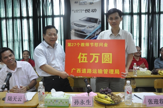孫永生書記在帶來自治區道路運輸管理局慰問的同時,就學校今後的教育(yù)工作提了要(yào)求和希望:一方麵,在今後職業(yè)教(jiāo)育發展的大好形勢(shì)下,學校領導班子(zǐ)要團結協作,科學規劃,深入貫徹落實科學發(fā)展觀,進一步調動廣大教職工的積極性、主動性和創造(zào)性,把學校建設(shè)成為全區(qū)乃至全國品牌交通(tōng)職業院校。另一方麵,廣大(dà)教師和教育工作者在教書育人的第一線,以(yǐ)高度的政治責任感、強烈的(de)曆史使命感和無私奉(fèng)獻精神默默耕耘,潛心教書,精心育人。在新學年的教育(yù)工作中開創新局麵,為我區交通運輸事業的大發展提供技能人才支持(chí),為建設富裕文明和諧新廣西做出新的(de)貢獻。