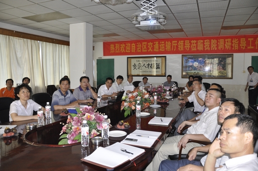 2011年7月6日,自(zì)治區交通運輸廳黨組成員、總工程師王劼耘,科教處處長岑春一行3人到我校檢查(chá)工作(zuò)。檢查組一行在武(wǔ)鳴縣人民(mín)政府副縣長陸耀忠、武鳴縣工業(yè)委員會、武鳴縣招商局相關負責人的陪同下,首先(xiān)到了我校規劃建設中的伊嶺新校區檢查指導。隨(suí)後(hòu),檢(jiǎn)查組一行到我校本部召開座談會。
