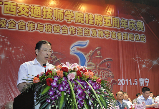 隨後(hòu),自治區交通運(yùn)輸廳副(fù)巡視員黃小幸(xìng)與自治區人(rén)力資源和社會保障廳副(fù)廳長於祖毅分別作了重要講話。上級主管部門和領導在講話中對我校“掛牌五周年”表示熱(rè)烈的祝賀,對我校過去五年取得的成績表示(shì)充分的肯定;希(xī)望我(wǒ)校以掛牌成立五周年為新起(qǐ)點,深入貫徹自(zì)治區中長期教育規(guī)劃綱要,緊緊抓住交通運輸大投入大建設大發(fā)展特別是汽車產業蓬勃發展的曆史機遇,進一步突(tū)出辦學特色,創新職業(yè)教育模式(shì),加快伊嶺新校區建設,不斷提升教學質量(liàng)和辦學實力,努力(lì)將學院打造成為一所現代化的、綜合性的萬人交通技師學院,為加(jiā)快我區(qū)高技能人才培養、深化職業教育改革作(zuò)出積(jī)極貢獻。