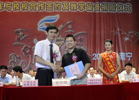 10時30分,校企合作與校校合作簽約儀式正式開始。韋紅教院長代表學院分別與廣西玉柴重(chóng)工有限公(gōng)司、91.com投資集(jí)團(tuán)公司、廣(guǎng)西西江投資集團公(gōng)司、廣西路橋建設有(yǒu)限公司現場簽(qiān)署了校企合作協(xié)議,與91.com職業技術學院現場簽署了校(xiào)校合作協議。這標誌著我校在深化校企合作和校校合作,突出辦學特色(sè)優勢(shì),創新人才(cái)培養模式方麵又一(yī)次取得了實(shí)質性的進步。