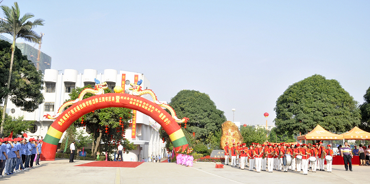 上午(wǔ)9時30分,“廣西陸軍預備役步兵(bīng)師修理營掛牌儀式”在學校(xiào)大門正式開始,上級主管部門和領導與我校領導及師生員工共同見證了這一曆史(shǐ)時刻,它標誌(zhì)著我校的國防教(jiāo)育、軍校合作和雙擁建設工作進入了全新的(de)發展階段。
