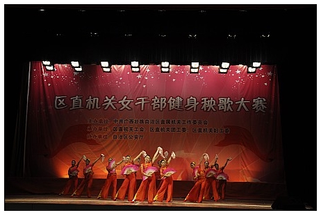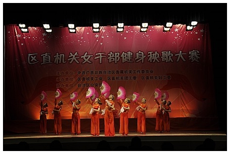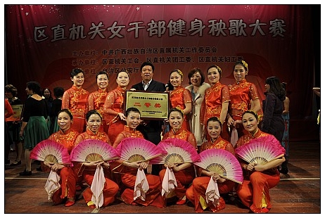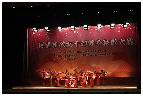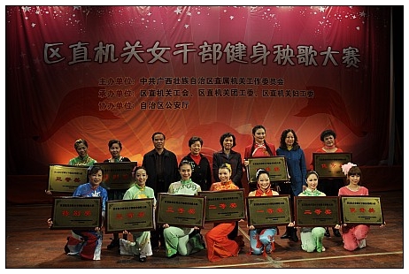 根據自治區交通運輸廳直(zhí)屬機關黨委、工會和自治區道路(lù)運輸管理局的要求,我校成立了由鍾翔鷹、劉飛英等12名女職工組成的健身秧歌隊,利用業餘時間刻苦訓練,精(jīng)心準備,於20101228日(rì)晚代表自(zì)治區交通運輸廳參加由中共廣西(xī)壯(zhuàng)族自治(zhì)區直屬機關(guān)工作委員會主辦的區直機關首屆女幹部健身秧歌大賽。我校參(cān)賽隊員在大賽中不懼強手,發揮優勢,展現優美舞姿,經過激烈(liè)角逐,榮獲大賽二等獎,為自治區交通運輸廳(tīng)贏得了榮(róng)譽,出(chū)色完成了上級下(xià)達的任(rèn)務,彰顯了學校良好的(de)精(jīng)神風貌(mào)和文化(huà)藝術風采。