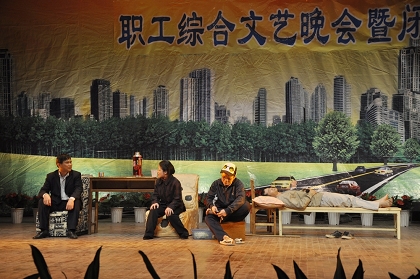 圖六(liù):小品《痛.快》劇照  表演(yǎn)者:行政、後勤  賴昭民(mín) 謝琳娜  潘敏春 李愛東等老師