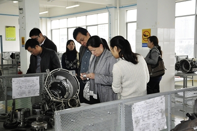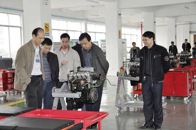 圖七:柳州市交通學校的專業教師在參觀我校汽車二(èr)級(jí)維護實驗室