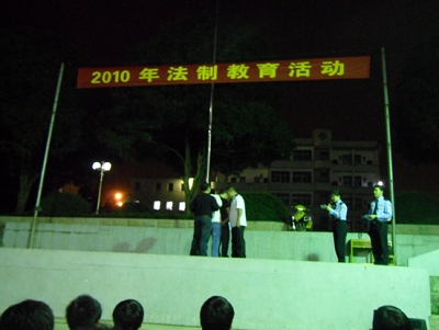 2010年(nián)4月(yuè)28日晚,學校學工處特邀南寧市巡警六(liù)大隊民(mín)警來校舉(jǔ)行“案例現場模(mó)擬”表(biǎo)演及法律知識講座。該活動增強了廣大學生的法製觀念,提高了學生自我安全防(fáng)範意識,為創建(jiàn)平安校園、和(hé)諧校(xiào)園打下紮實的基礎。