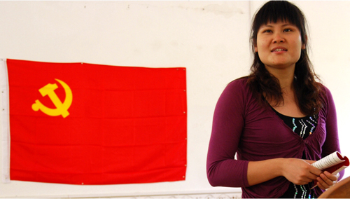 韋薇老(lǎo)師在宣講先進黨(dǎng)員動人事跡
