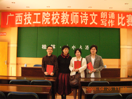 在剛剛落下帷幕的“廣西技工校校教師朗誦(sòng)比賽”中,我校教師譚紹(shào)鋒、賴昭民、曾嘉三位老師經過激烈角逐,憑(píng)借出色的發揮,囊括比賽大獎。來自全區50多個技工校校參加了本屆大(dà)賽。我校三位老師經過長期艱苦訓練,精心準備,在比賽中表現(xiàn)突(tū)出,分別獲(huò)得一等(děng)獎和二等獎。特別是譚紹鋒老師(shī)在(zài)比賽中以其不俗的表現力壓群雄,榮獲大賽冠軍,充分展示我校教(jiāo)師的良好職業素質和精神風貌(mào)。學校對以上(shàng)三位獲(huò)獎老師表示熱烈祝(zhù)賀。