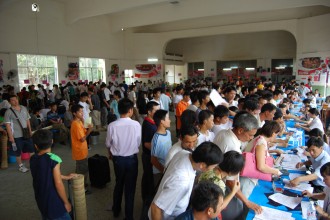 新生報(bào)到審(shěn)核編班場麵(miàn)(二)